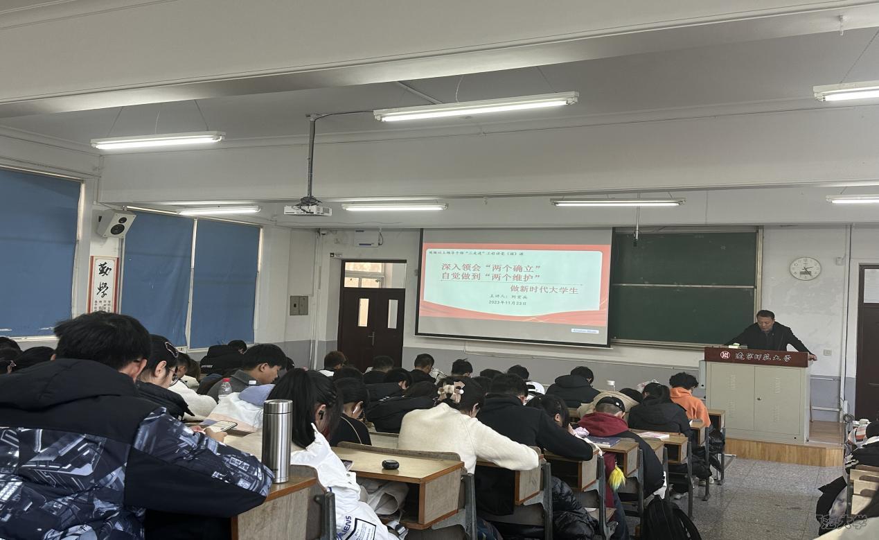 党委副书记雷鸣老师对本次党课内容进行总结。雷书记指出,刘处长的党课深入浅出,将专业性与趣味性融为一体,具有很高的学习价值,希望同学们课后认真领会与思考本次党课内容,深入领会“两个确立”,自觉做到“两个维护”,今后争做新时代大学生安全文化的传播者与践行者,不忘初心、牢记使命,在新时代的奋进征程里勇毅前行。