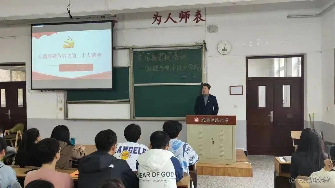 第76期党校培训班第一讲在外语楼第七合堂进行。学院党委书记曲建辉老师以“全面准确落实党的二十大精神”为题,对深入学习领会党的二十大报告精神进行了重点突出、条理清晰的解读。讲座由学院组织员周媛老师主持,第75期、第76期积极分子参加了本次培训。