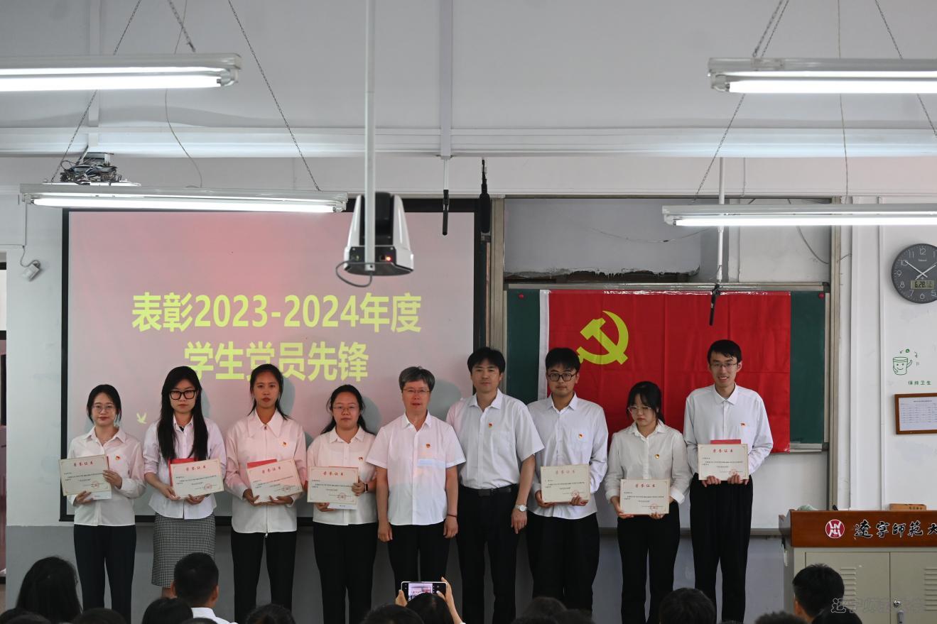 会议第四项,学院党委书记曲建辉和院长(兼党委副书记)孙景昌一同为2023-2024年度学生党员先锋颁发证书和纪念品,希望党员先锋珍惜荣誉,继续发扬党的优良传统和作风,做有理想、敢担当、能吃苦、肯奋斗的新时代好青年。