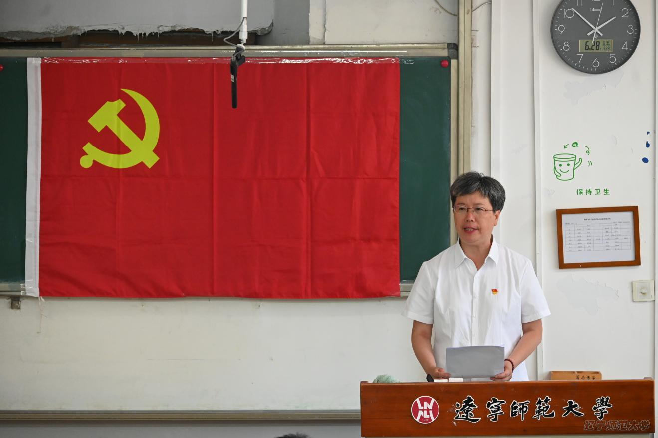 会议最后一项,学院党委书记曲建辉发表讲话。她代表学院党委向学院广大党员同志们致以节日的问候,向被批准加入党组织的新党员表示热烈的欢迎,向受表彰的党员先锋表示衷心的祝贺!曲书记强调,中国共产党103年的光辉历程,团结带领人民开辟了伟大道路、建立了伟大功业、铸就了伟大精神、积累了宝贵经验。当前全党正在深入开展党纪学习教育,这是以习近平同志为核心的党中央作出的重大决策部署,是加强党的纪律建设、推动全面从严治党向纵深发展的重要举措。学院广大党员始终坚持学习党的理论知识,在工作中辛勤付出和无私奉献,为学院事业发展贡献了强大力量。回顾过去,旨在开创未来,师生党员要增强使命感、责任感与紧迫感,做好本职工作,承担党员职责。结合本次活动,曲建辉书记向全体党员提出三点希望和要求:一是要赓续红色血脉,在强化理论武装中增强战斗力,展现党员担当,用实际行动助力推进学院高质量发展;二是要坚守初心,在落实立德树人使命的过程中弘扬教育家精神,勇做新时代的“大先生”,切实发挥党员的先锋模范作用;三是要铸牢信念,在追逐梦想的路上肩负时代使命,让青春在为学院发展、为辽宁全面振兴中彰显风采、贡献力量,在中国式现代化火热实践中书写挺膺担当的青春篇章。希望学院全体师生党员发扬党的优良传统,牢记党的根本宗旨,以更加昂扬的斗志、更加务实的作风,引领身边的党员和群众接力探索,接续奋斗,为实现学院“十四五”规划目标、推动学院事业高质量发展不懈努力!