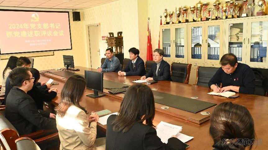 会上,各党支部书记依次进行述职汇报,围绕过去一年党支部在政治建设、思想引领、组织生活、党员发展与教育管理、党建与业务融合等方面重点工作展开。他们用翔实的数据、鲜活的案例呈现支部工作成效,如教师党员在科研、教学、指导学生竞赛方面取得了丰硕成果,学生党员在志愿服务、评优评先、就业等方面发挥表率作用,各支部以党纪学习教育为抓手,积极开展理论学习,夯实思想根基。在总结成绩同时,各支部书记也直面问题,深挖不足。针对这些问题,各支部书记都提出了整改思路与未来规划,表示要精准施策、持续发力,推动支部全面进步。在述职环节,按照“一述一评”要求,党委书记曲建辉分别对各支部工作进行点评,既肯定成绩亮点,又指出短板,提出意见建议。