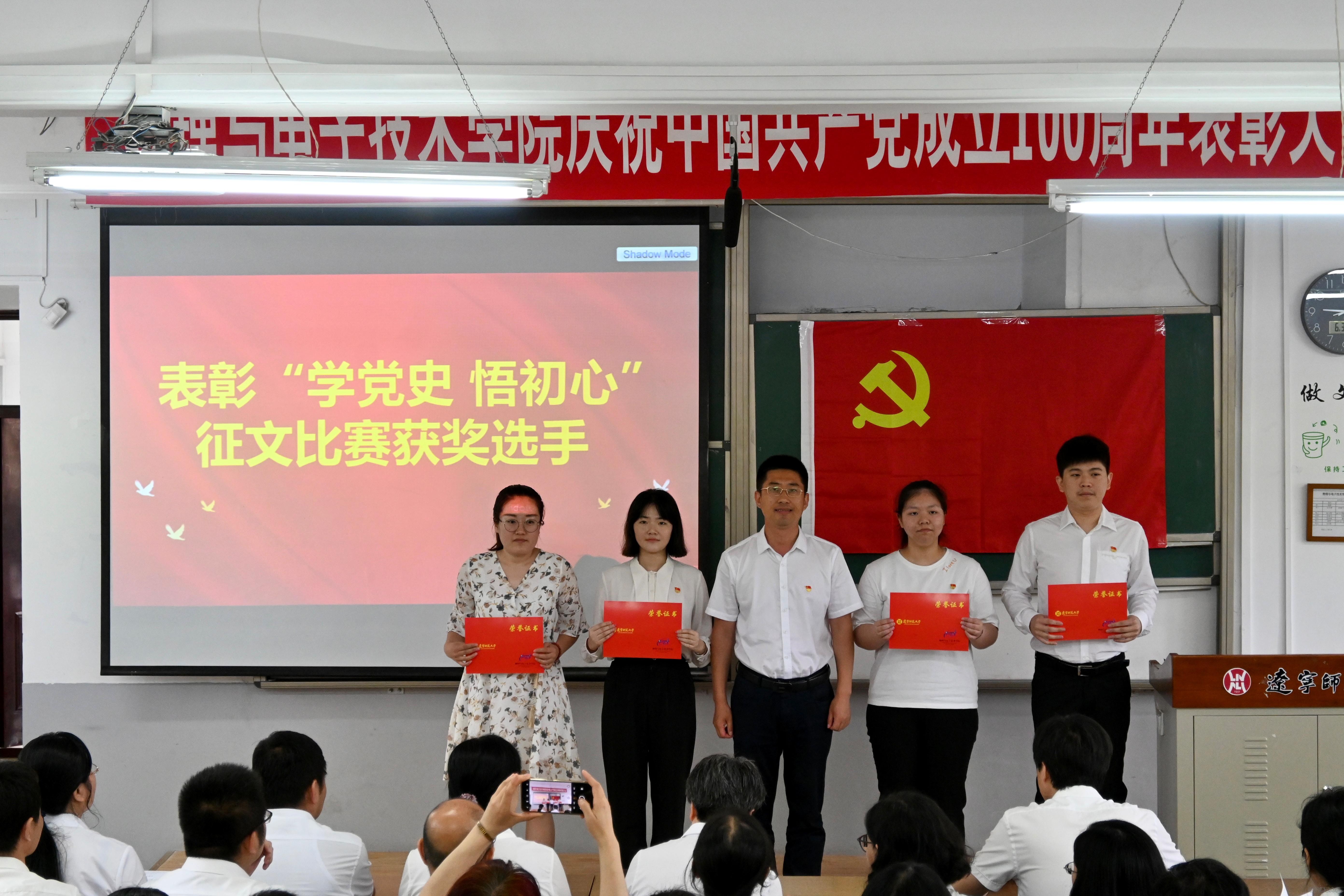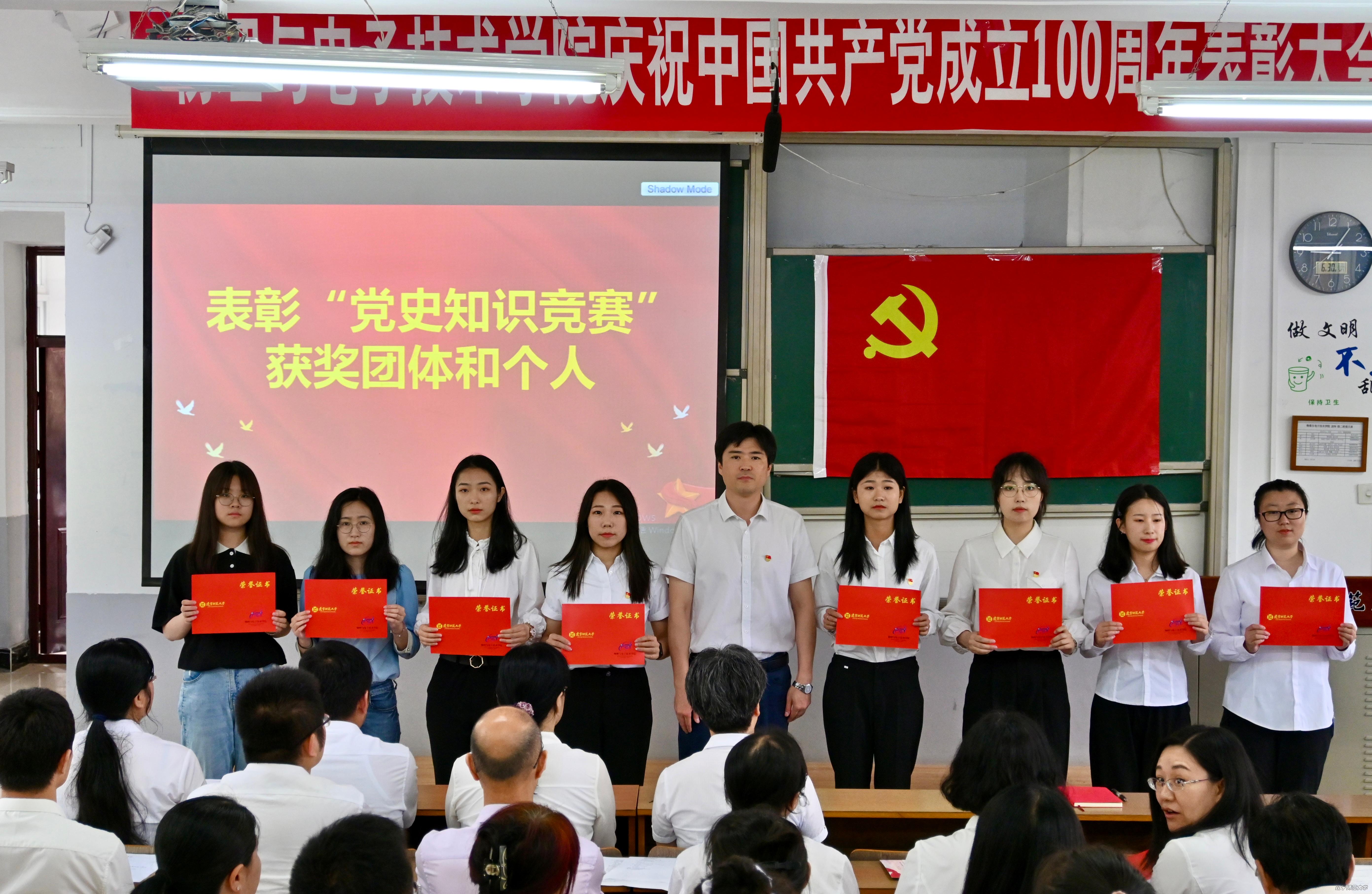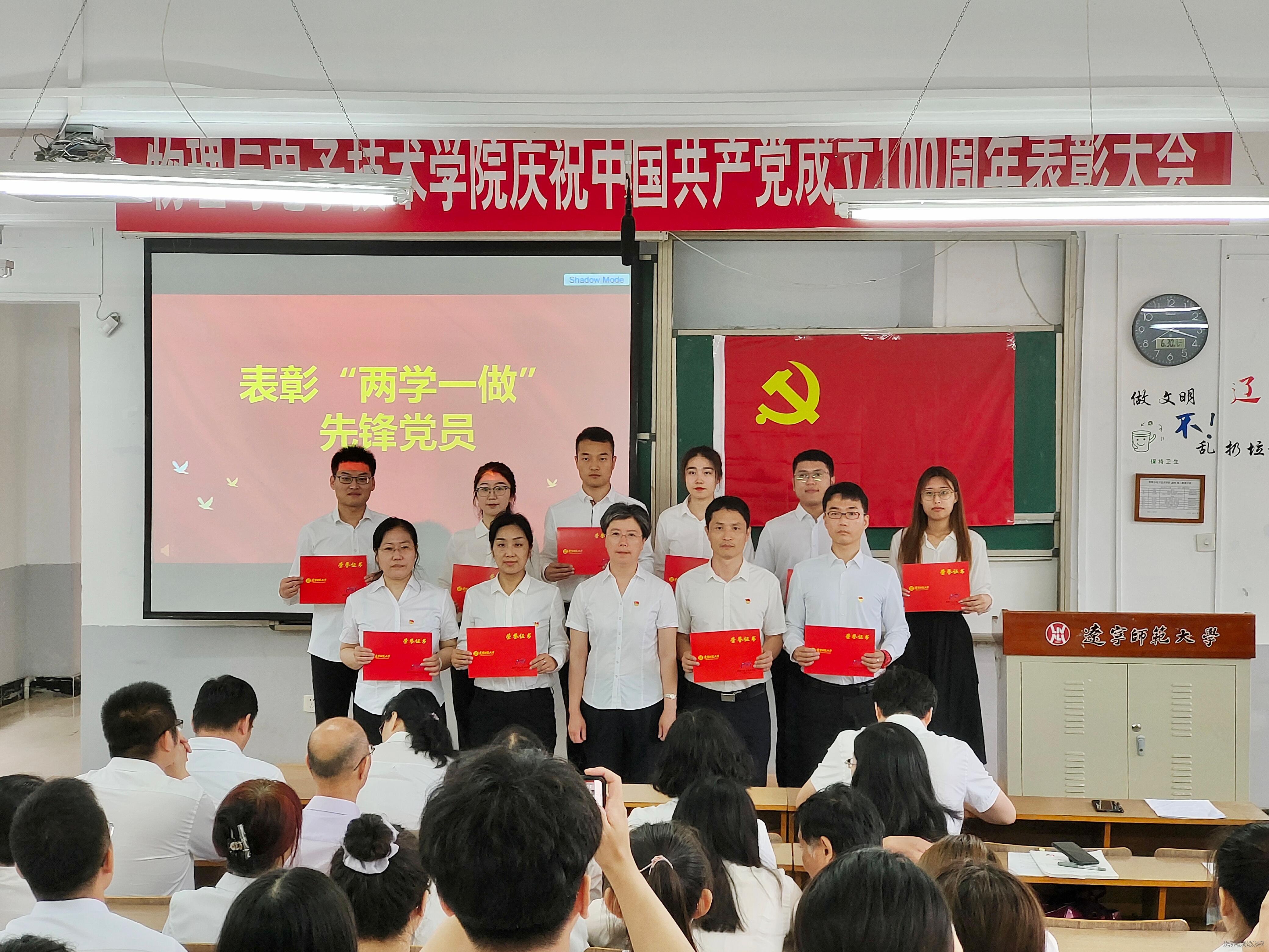 举办庆祝中国共产党成立100周年表彰大会暨“永远跟党走”诗歌朗诵活动,出席大会的有:学院党委书记曲建辉同志、党委副书记、院长孙景昌同志、学院党委委员、班子成员、全体师生党员及获奖同学代表,表彰大会由学院党委副书记李孝君主持。