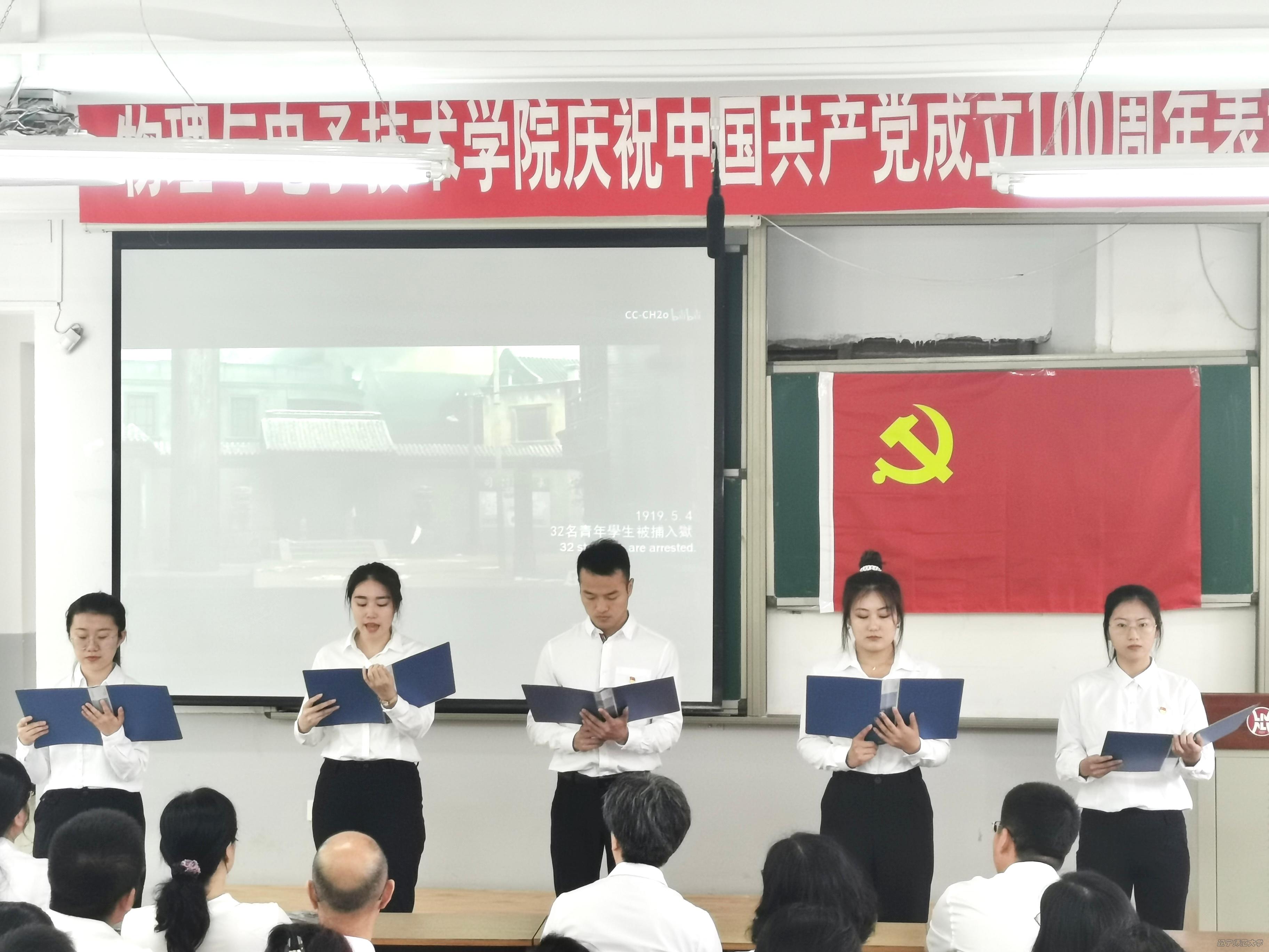 学院党委书记曲建辉同志带领新党员宣誓、老党员重温入党誓词。