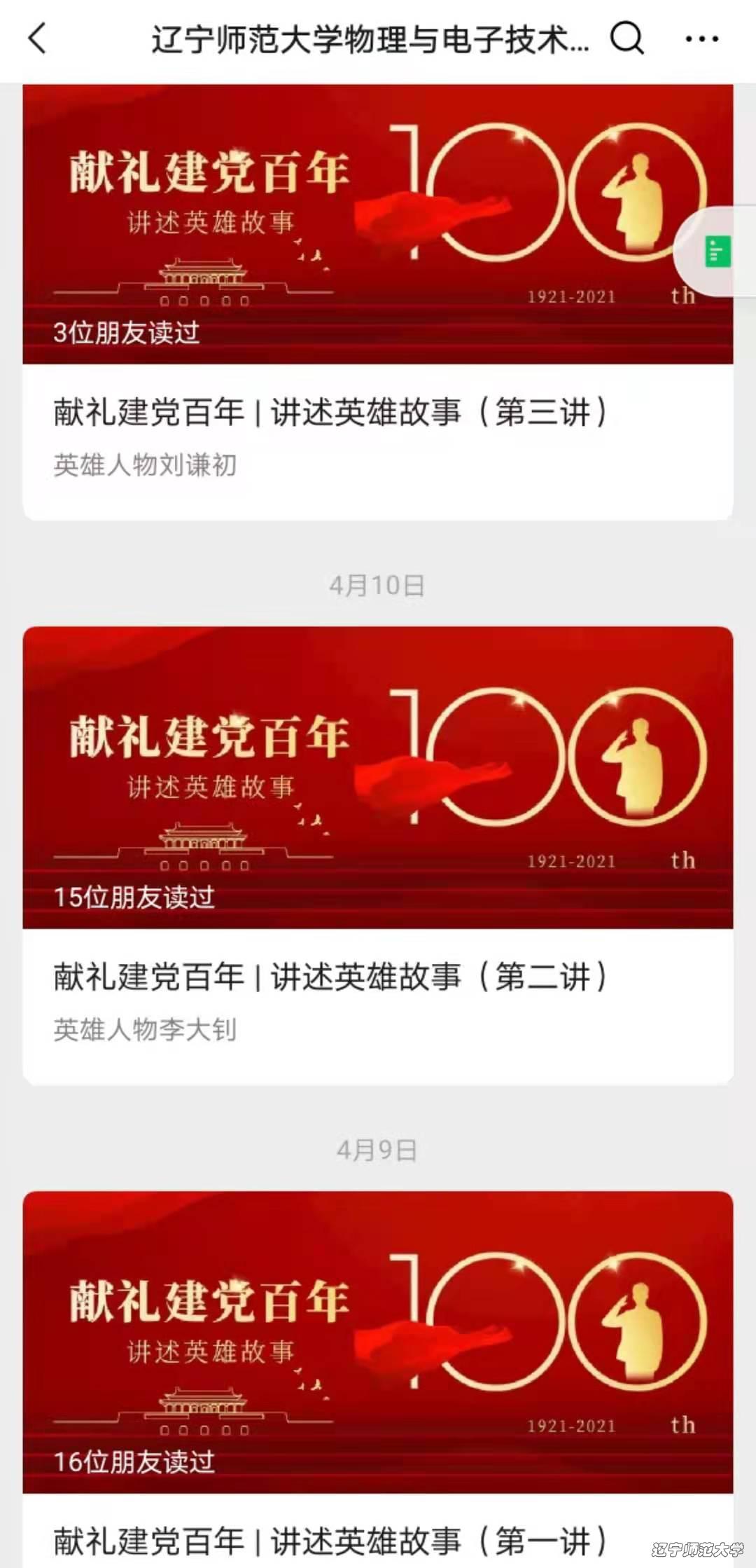 为增强仪式感和参与感,学院在“物电学院微党建”公众号连续推送了100期英雄人物红色故事,组织党员开展“我把颂歌献给党”诗歌朗诵会,开展重温入党誓词活动,参与全省网上党史知识竞赛等。组织师生党员赴校史馆、思政中心、旅顺日俄监狱旧址、“周恩来总理在大连”纪念展室、锦州辽沈战役纪念馆等地开展实地研学,组织观看爱国电影《长津湖》。为营造党史学习教育的浓厚氛围,引导党员在学习党的百年光辉历程中践行初心,学院为每位教师党员制作了党员个人政治生日卡,学院上下营造了学习的浓厚氛围。