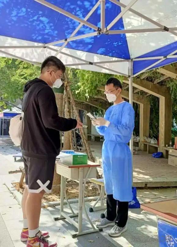 按照学校统一部署,党员教师被划分到不同小组,分别在学校正门、后山公寓城大门处的核验区进行服务,负责指导学生保持距离、依次排队进行入校核验、测量体温、提醒同学们做好自身防护等。