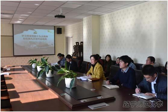 会上,党总支书记曲建辉传达了《辽宁师范大学深入学习贯彻党的十九大精神工作方案》,结合自己的学习体会以“八个新”对十九大报告的主要内容进行解读。并对学院学习贯彻党的十九大精神提出具体要求,将通过多种形式在全院掀起学习贯彻党的十九大精神的热潮。她强调全体教师要充分认识党的十九大的重大战略意义、深刻领会十九大精神的实质、准确把握其深刻内涵,将学习贯彻十九大精神与“两学一做”学习教育相结合、与全国高校思想政治工作会议精神相结合,要将学习贯彻党的十九大精神转化成扎实工作的具体行动,牢固树立“四个意识”,不断提高学识修养和社会服务能力,把学习的成效体现到推进学院建设的全过程,积极担当作为,推动学院各项工作取得新成绩。
