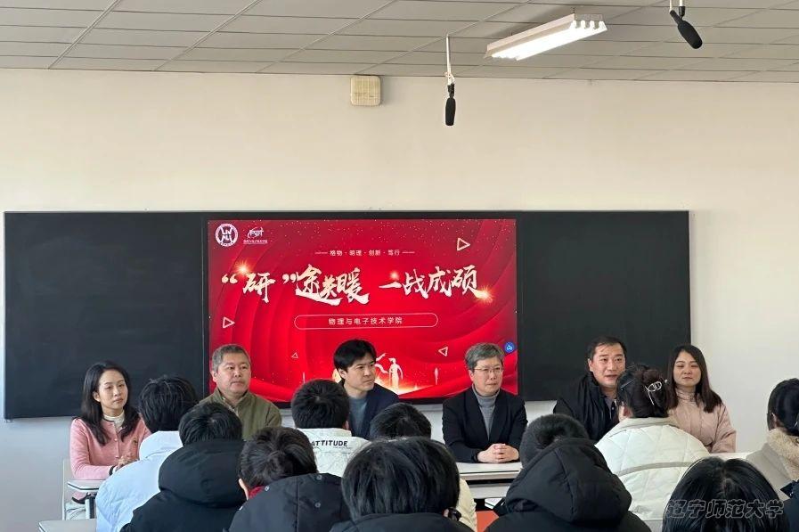 为缓解考研学子压力,增强迎考信心,12月18日,学院党委书记曲建辉老师、学院院长孙景昌老师、党委副书记雷鸣老师、副院长陈建兴老师、团委书记兼2024级本科生辅导员张倩老师、2022级本科生辅导员任美懿老师在理化楼A719与考研学子见面并进行暖心慰问。老师们的暖心讲话,如春风化雨,驱散了冬日的严寒,字里行间皆是对同学们的关怀与期待。