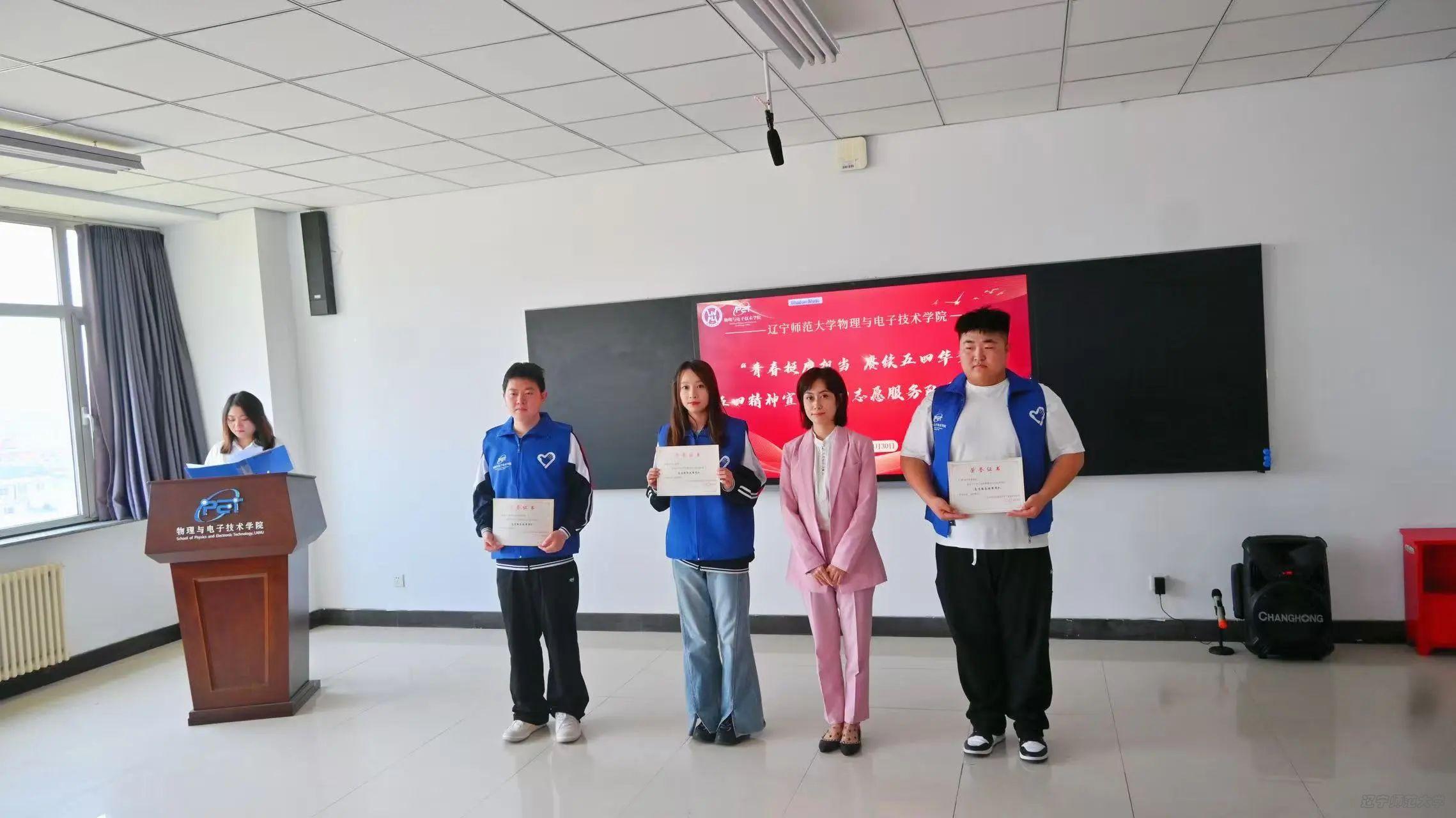学子以及志愿服务团队,同时她宣读了优秀志愿服务者、优秀志愿服务团队表彰名单,崔斌老师、张诗朦老师为获奖者颁奖。